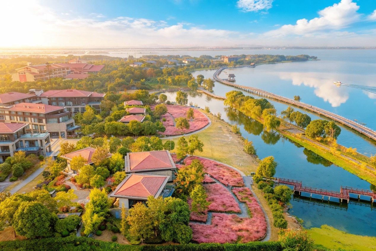 在園區(qū),豐富的水陸體驗等待著游客探索。球迷可乘船登臨桃花島,或乘坐中央河觀光專線,無論是白天還是夜晚,都能沉浸式感受園區(qū)的非凡魅力;也可以打卡金雞湖環(huán)湖驛站,漫步金水灣棧橋,享受悠閑時光。此時的陽澄湖半島,楓葉正紅、銀杏鋪金、粉黛搖曳,風(fēng)景宜人,同樣是市民游客休閑打卡的好去處。?