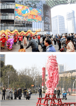 Jinji Lake Grand Hotel decorated its lobby with Chinese knots, red lanterns and other decorations. Dragon and lion dancing performances were staged, and diverse events were held following folk customs.