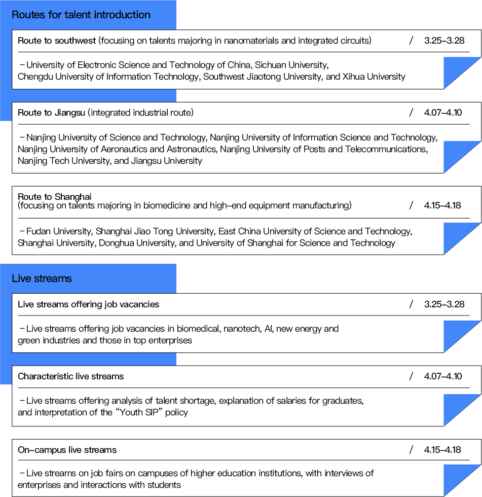 As part of SIP’s spring recruitment drive, a job fair was heldin SIP AI Industry Park on Apr 2, when 101 enterprises and public institutionsengaged in biomedicine, artificial intelligence, nano materials, integratedcircuits, high-end equipment manufacturing and modern services offered over1,600 job vacancies. The event was sponsored by the Office of SIP Lea... [MORE]