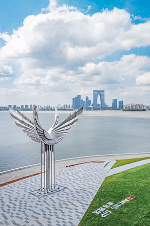 They also visited the 14,200-square-meter square newly created on the right bank of Jinji Lake to highlight the cultural characteristics of Suzhou and serve as a high-quality leisure space for local residents and tourists, and listened to the introduction to the 20-meter-high sculpture called “Flying”, which symbolizes the bright future of win-win cooperation between China and Singapore.