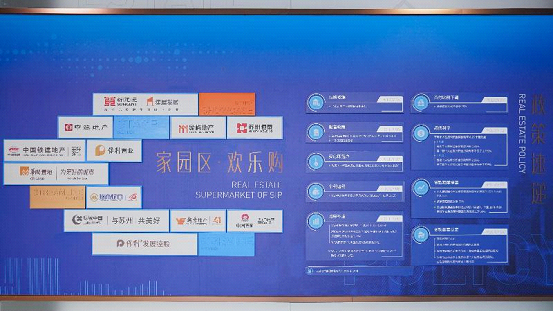 The Real Estate Supermarket of SIP, with a floor area of about 3,000 square meters, was opened at Hall G of Suzhou International Expo Centre last November to provide one-stop, precise services for people to select and buy houses. It has the new house exhibition center, the roadshow center for real estate developers, the live streaming center and the one-stop service center which allow purchasers to go through all the procedures of buying a house in one go.