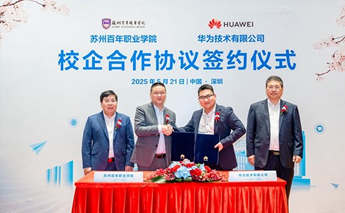 Suzhou Centennial College, a school in SIP, and Huawei Technologies Co Ltd, a Chinese multinational telecommunications equipment and consumer electronics company, signed an agreement on May 21 to launch cooperation in talent cultivation.