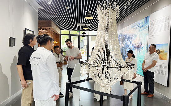 “Gaze”, the artistic installation jointly created by Frédéric Baron, co-designer of the Le mur des je t’aime (“Wall of Love”) in Montmartre, Fei Zhixiong, a Chinese calligrapher, and Zhang Dalu, a professor at the School of Art of Soochow University, was shown. It echoes the charm of both the Seine and Jinji Lake, presenting a poetic contemplation that bridges Eastern and Western civilizations.