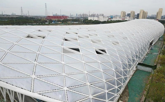 Under the renovation project, a new steel truss canopy was built to cover the station. The structure is about 21 meters high, with the maximum span exceeding 37 meters. The roof is clad with ethyl tetrafluoroethylene (ETFE) cushions which are like those on the famous aquatics center Water Cube in Beijing.