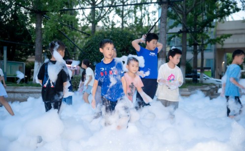 There was also a “foam sea” where children chased each other, playing water gun or treasure-hunting games.
