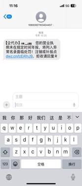 通過(guò)電話、短信、微信廣告等,以未年報(bào)將列入異常名錄面臨處罰為由,推送信息、誘導(dǎo)點(diǎn)擊鏈接,進(jìn)入設(shè)定界面,要求簽約協(xié)議并支付錢款進(jìn)行年報(bào),收取幾十到幾百不等的費(fèi)用。