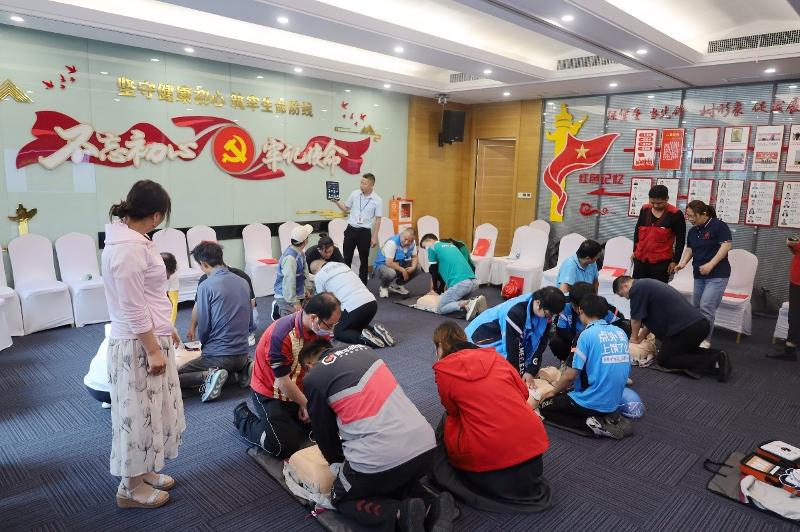 5月30日-5月31日下午,“星騎士”急救培訓計劃啟動暨首場專題培訓會正式啟動,蘇州工業園區組織部組織處處長、蘇州工業園區東方華夏心血管健康研究院聯合黨支部書記、蘇州工業園區民企黨委委員、蘇州工業園區外賣配送行業黨委書記等出席活動,20名美團、餓了么、盒馬鮮生等“星騎士”學員學習CPR急救技能等相關知識。