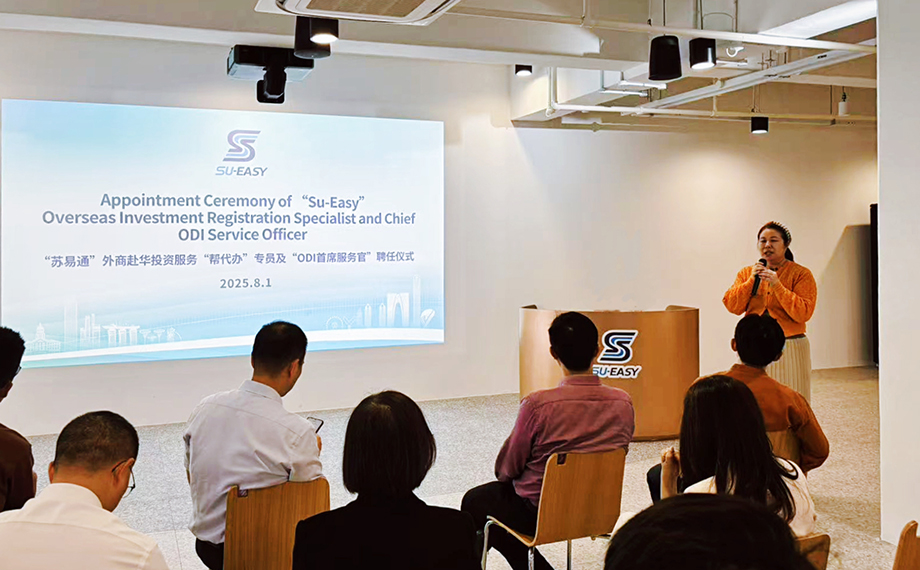 外商赴華投資設(shè)企如何獲得高效支撐?蘇州工業(yè)園區(qū)“蘇易通(Su-Easy)”跨境投資服務助力全球投資者“一鍵落戶”。近日,“蘇易通”首個境外幫代辦專窗在蘇州工業(yè)園區(qū)新加坡國際商務合作中心正式設(shè)立,首批“蘇易通”服務專員受聘上崗,將為兩地乃至更廣泛區(qū)域的投資者提供專業(yè)高效的全流程幫辦服務,助力企業(yè)跨境投資業(yè)務高質(zhì)量發(fā)展。