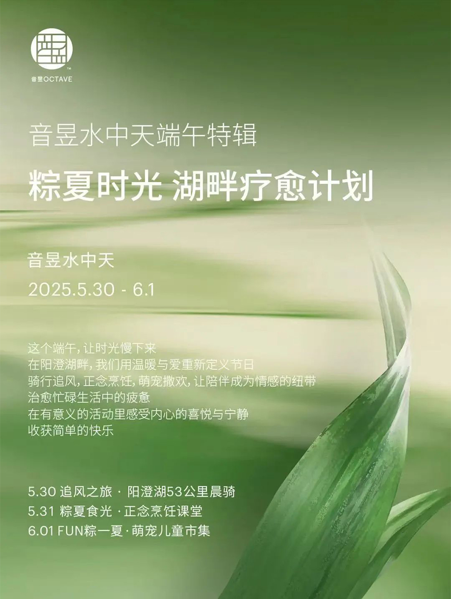 音昱水中天推出端午特輯“粽夏時(shí)光 湖畔療愈計(jì)劃”,邀你在陽(yáng)澄湖畔騎行追風(fēng)、正念烹飪、萌寵撒歡,讓時(shí)光慢下來(lái),讓陪伴成為情感的紐帶,在有意義的活動(dòng)里感受內(nèi)心的喜悅與寧?kù)o,收獲簡(jiǎn)單的快樂(lè)。