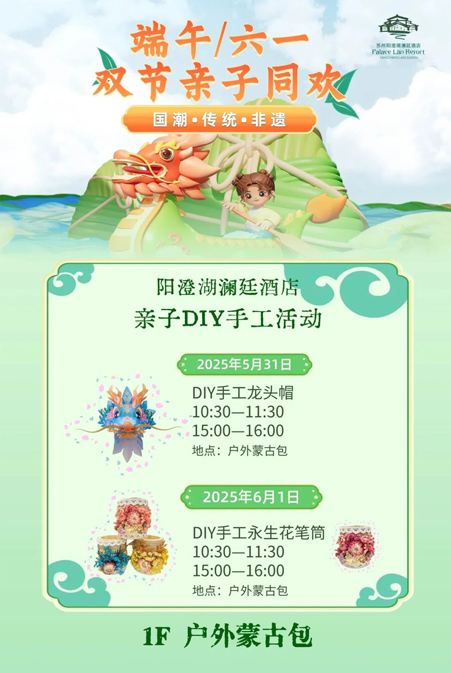 陽(yáng)澄湖瀾廷酒店推出親子DIY手工活動(dòng),帶領(lǐng)大家親手制作龍頭帽、永生花筆筒,還有DIY非遺團(tuán)扇、DIY漢服等豐富項(xiàng)目,讓游客們沉浸式感受端午氛圍,體驗(yàn)中華優(yōu)秀傳統(tǒng)文化魅力。